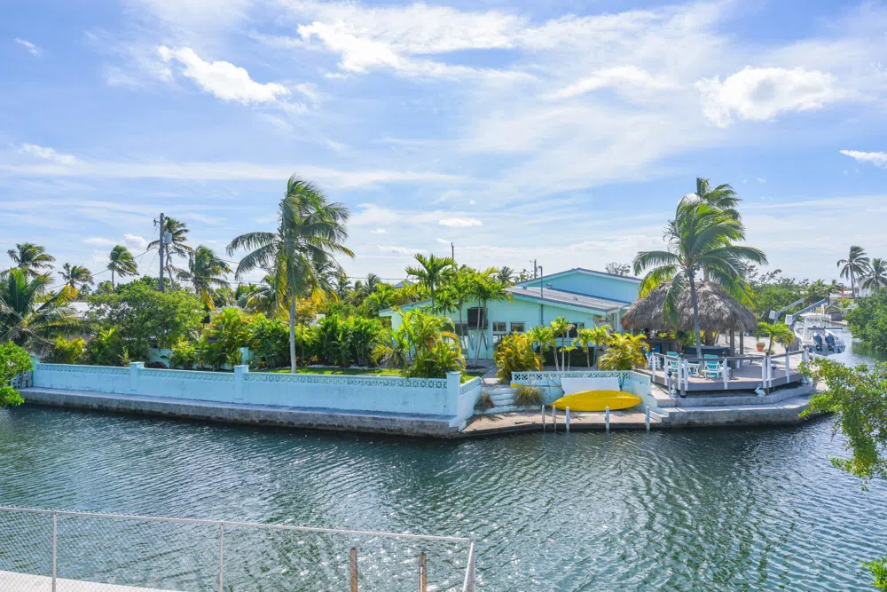 Welcome to your dream Keys home & boater's paradise! This unique property at the end of the street boasts a corner canal and a cut-in boat slip, providing app. 330 feet of waterfrontage & an impressive 260 feet of concrete seawall. The distinctive concrete construction of this 3-bedroom, 3-bathroom home features vaulted open-beam ceilings, creating a spacious & inviting atmosphere. A new metal roof is scheduled to be installed early 2024. The interior is adorned with tile throughout, & 2 of the bedrooms are ensuite, offering both comfort & convenience. One bedroom has an additional room off of it and is specially designed to be handicap accessible, with a handicap bathroom, with French doors providing direct access to the canal. For added living space, there's an extra room with a built-in Murphy bed,. The large kitchen is a focal point, boasting granite countertops and stainless appliances, creating an ideal setting for culinary enthusiasts. The main bedroom includes an office area & a generously sized bathroom. The outdoor features of this property are truly exceptional. The 260 feet of concrete seawall is equipped with 11,000lb boat davits, a step-down area with a ladder, & a floating dock, catering to the needs of avid boaters & kayakers. Two covered outdoor areas provide a private & relaxing environment, as there's only one house located on the north side. The composite deck, covered by a Tiki Hut, includes a matching bar with water & electric connections, creating a perfect setting for entertaining or simply enjoying the beautiful surroundings. The property offers two distinct side yards--one featuring a sodded yard with tropical trees & ample space for a pool, & the other with foliage, a cut-in boat slip, & room for an RV or boat trailer. The 14' high garage with electric door openers on both the front yard & canal side provides secure storage for vehicles or equipment. With 2 driveways, there's plenty of parking. Come see this beautiful property today.