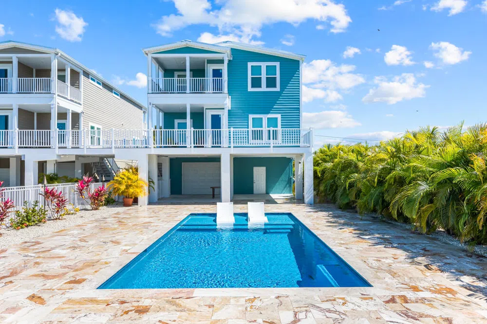 Seller is extremely motivated, must sell. Make an offer. Dream home in the sought after Coco Plum neighborhood less than a mile from the Beach offers a like-new, 2,875 sq. ft. home with dock permit in hand! (valid for 4 years). Beautiful views, a heated concrete pool paired with easy ocean access via the deep & wide canal create a great investment opportunity to become a highly desirable vacation rental property which could easily produce approx. $150k yr. with adding a dock. The new elevator will transport you effortlessly to all 3 levels starting with the massive, ground level 1,100 sq. ft. garage and onward to the immaculately cared for modern interior with multi-level trex porches found on both the back and front of the home. On every floor of the living spaces, you'll find a master suite, a washer & dryer, and living rooms. Sprawl out, bring both the friends and family and embrace spacious, low-maintenance living in paradise!