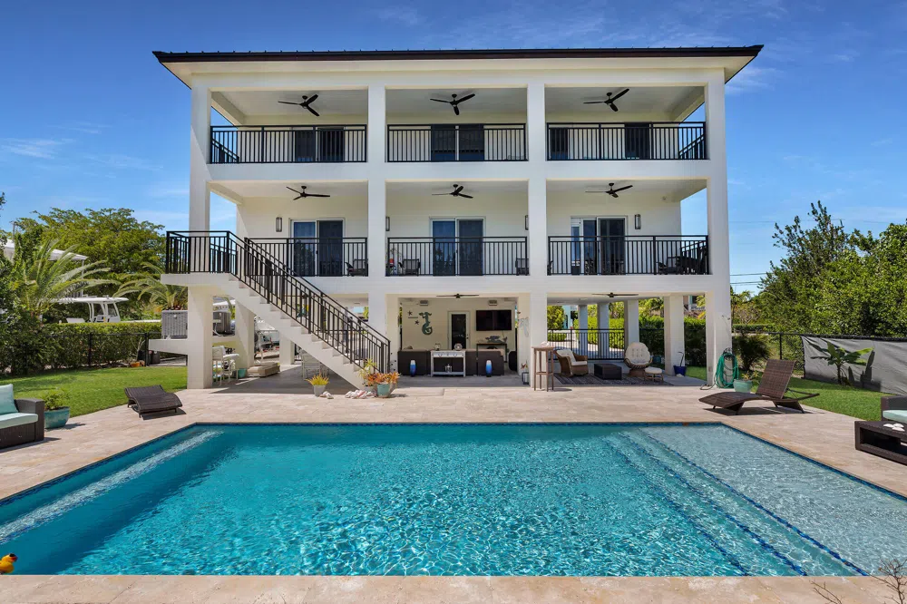 DUCK KEY-Experience Luxury Island living at its finest in this newly constructed 2020 CBS home w/superior craftsmanship & meticulous attention to detail. Architecturally designed to maximize space & comfort, this home offers a 3,319+/- sqft of living space, encompassing 4 bedrooms and 3.5 baths. Upon entering, you'll be greeted by timeless elegance. A stunning marble staircase sets the tone for the home's sophisticated aesthetic. The open concept layout & soaring high ceilings enhance the sense of spaciousness, while the huge kitchen & island offer loads of cabinets, quartz countertops, ss appliances & wine cooler that beckons to aspiring chefs & entertainers alike. 2 bedrooms are conveniently located on the main level, offering flexibility and convenience. Ascend to the 2nd floor to discover an impressive primary suite that offers peek-a-boo views of Toms Harbor, primary bath with soaking tub & oversized shower. There's an additional bedroom & a versatile loft space which provides the option to convert the loft into a 5th bedroom. Main floor laundry rm. Outside, oversized balconies adorned with travertine tile invite you to soak up the beauty of Duck Key, while the lush landscaping, brick paver driveways & sprawling oversized 12,413 sqft lot create a serene outdoor oasis. Take a refreshing dip in the 15 x 30 pool or simply unwind amidst the beautiful mature shrubbery that surrounds you and offers privacy. Plenty of parking both open & covered. Conveniently located & walking distance to the Hawk's Cay Resort, residents have easy access to the resort's restaurants, attractions & boat ramp (available to residents for a small fee) or join Club Duck Key. With too many features to list, this newly constructed, well-maintained home presents a rare opportunity for discerning buyers seeking luxury coastal living. Don't miss your chance to make this gem your own. POSSIBLE OWNER FINANCING. ATTRACTIVE TERMS. Call for details. B&BATVAI