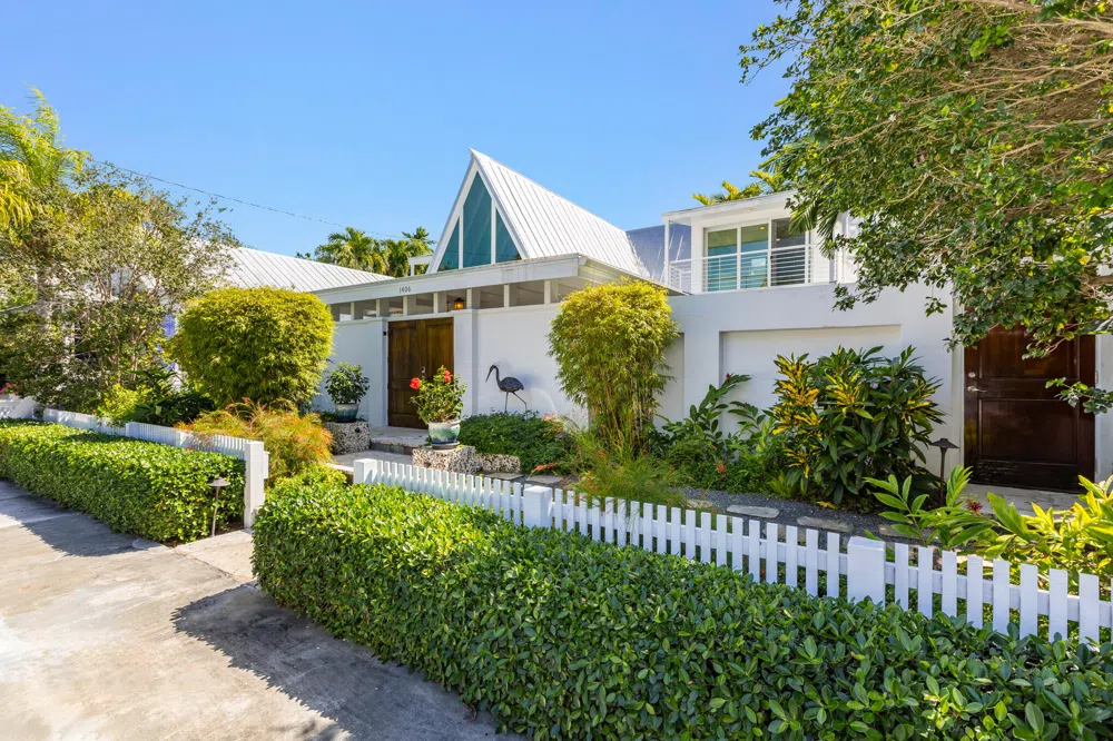 Nestled within the heart of one of Key West's most prestigious neighborhoods, 1406 Pine Street epitomizes the island lifestyle. This one-of-a kind A-Frame masterpiece is a true vision of indoor-outdoor living creating the perfect environment for entertaining. Striking Oolite stone steps and lush landscaping invite you to explore what lies beyond the 7' tall privacy wall. Enter the residence to discover a grand entryway with South American Mahogany double-doors, soaring 17' cathedral ceilings in the living room, impact glass sliders, uninterrupted sight lines that unify the indoor-outdoor living spaces, and an 17' heated swimming pool with a custom 7' water feature and shallow shelf for lounging! Ipe decking surrounds every room on the first floor creating the ideal setting for an entertainer's dream. The main level features Brazilian slate floors throughout with a large family-style kitchen, open living room, and the primary bedroom with an en suite bathroom. The kitchen features stainless steel appliances, a large center island, granite countertops, and custom maple cabinets. As you take the modern staircase to the second level, you are allured by the architectural details that embellish the vaulted ceilings and a knee wall that opens over the living room enhancing the airy open feeling of the home. Two large bedrooms on opposite sides of the home each have their own private balconies and share a guest bathroom with original hand painted Susie de Poo tile. The staircase has a picture window and either end of the home features stunning stained glass. Very rare opportunity to purchase this aesthetically pleasing Key West home ideally located in the X-flood zone and close to Garrison Bight Marina, the Gallery District, and the island's best restaurants, shopping and attractions. Schedule your private showing now!