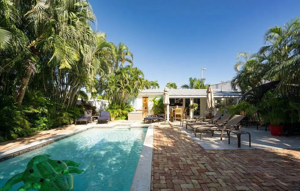 This updated single family home is located in Midtown Key West with easy access to Old Town, beaches, shopping, dining, schools, and more. This is a private tropical oasis with lush landscaping, privacy fence, beautiful backyard pool, outdoor shower and more! Modern bright kitchen with stainless steel appliances and breakfast bar. The living room flows to the outdoor space making this home ideal for entertaining. There is a perfect covered porch to dine al fresco and you will enjoy poolside sunning on the generously sized bricked courtyard. The spacious primary suite includes a sitting area/home office space and beautiful attached full bathroom with a laundry closet. The hall bathroom is updated and offers ample storage space. Florida living with plenty of space for relaxing in the front yard or backyard garden areas. Central AC 2022. Kitchen and baths 2022. Saltwater pool. Driveway for boat/auto parking and plenty of side yard area space for your water toys and paddle boards.