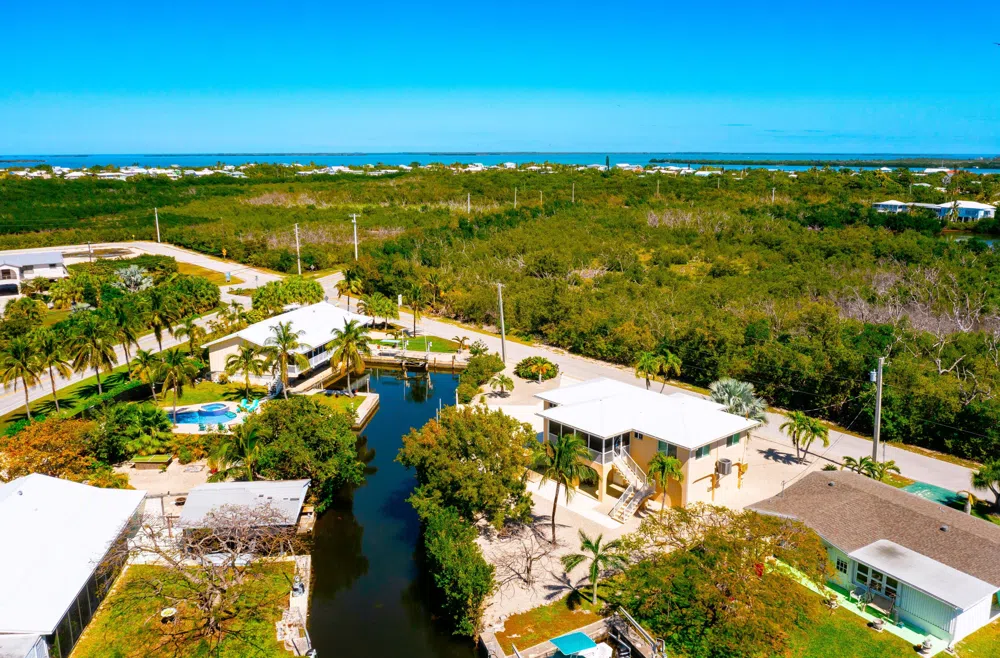 1824 Sunrise Drive presents an exceptional opportunity to own a meticulously maintained CBS, waterfront residence nestled in the tranquil surroundings of Big Pine Key. Upon entry, you're greeted by an open concept layout, featuring a coastal-inspired kitchen adorned with new solid wood cabinets, quartz countertops, a generous island, and stainless steel appliances. Slide open the glass door to access the inviting screened porch, where you can relax and take in the serene views of the mature hardwoods and Royal Poinciana tree, creating the perfect setting for quiet evenings.Downstairs, a fully enclosed two-car garage and resurfaced, epoxied driveway provide practical convenience. Set on an ample 12,000 sq. ft. lot, this home boasts a BRAND NEW 10,000-lb. boat lift and 193' of concrete seawall. The well-maintained 30' canal ensures quick navigation to the bay, free from bridges or lengthy canal rides. With low-maintenance landscaping, you'll have more time to savor the quintessential Florida Keys. Tropical Bay Estates, within walking distance to the iconic No Name Pub and fishing bridge, invites residents to enjoy leisurely bike rides, observe Key Deer, and embrace a relaxed pace of living. Don't miss the chance to make this idyllic waterfront retreat your own.