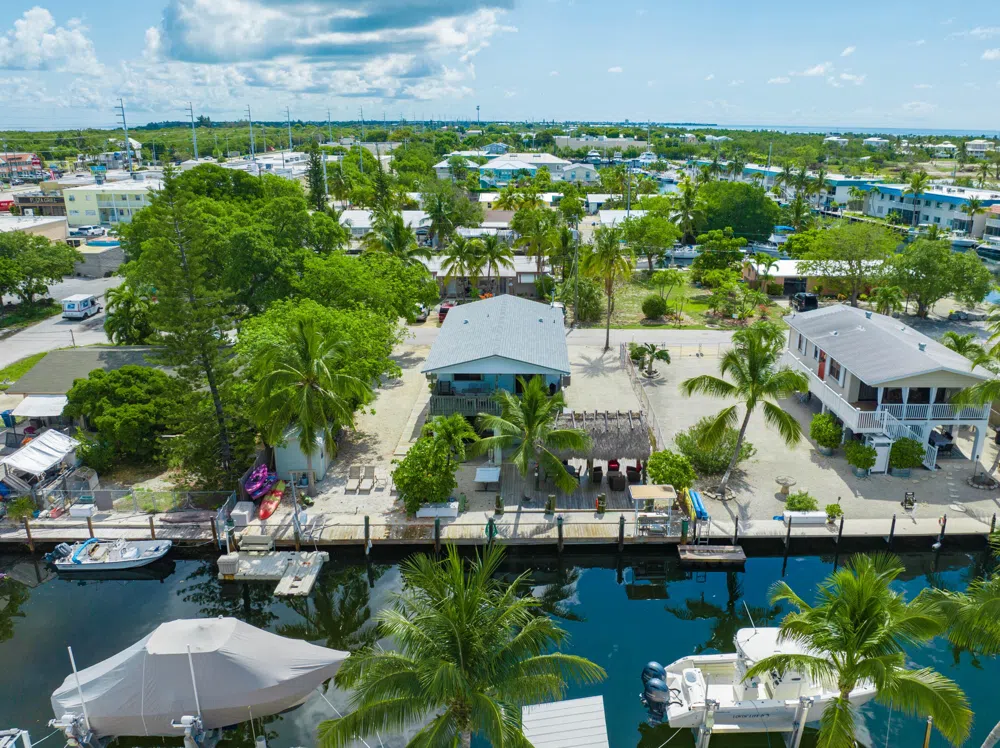 Canal front Marathon home on a sizeable lot in a prime location! This well-maintained property expertly utilizes its waterfront location with ample outdoor living space, complete with a jet ski lift, chickee hut, and direct no-bridge access to Boot Key Harbor and the Atlantic Ocean beyond. This house is an incredible investment opportunity as it is currently being operated as a successful rental property. The home boasts an open-concept main living space with plenty of natural light, blending seamlessly into the well-equipped kitchen featuring Miele appliances and abundant cabinetry. Two spacious bedrooms and two bathrooms provide comfortable space for guests. A large, open back porch overlooks the yard and canal below, the perfect backdrop for dining al fresco or enjoying an evening cocktail while taking in the ocean breezes. A downstairs bonus storage space and an additional shed provide a plethora of space for housing tools and equipment. Just minutes from stores, restaurants, and attractions in exciting Marathon, this home is a peaceful retreat with added convenience and proximity to town. Schedule a showing today!