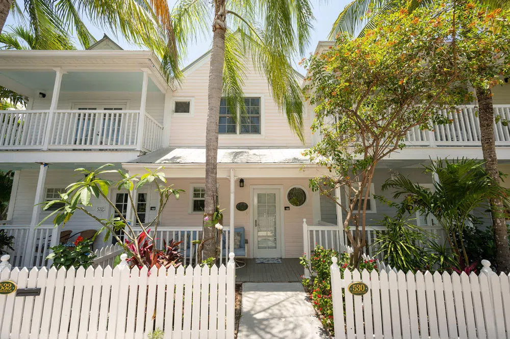 Opportunity knocks. Beautifully renovated Truman Annex townhouse- 'Salty Kisses' -conveys with special limited transient rental license in place. Tropical Vibe, light and bright, with new sleeper sofa, swival occasional chairs with ottomans, dining table and chairs, upgraded bath and kitchen, featuring impact doors, windows, on demand hot water, central air, private balcony as well as fenced deck for entertaining. Assigned covered parking with storage just outside your patio gate. Conveniently located community pool. Incredible location-Truman Waterfront, Ft Zach State Park, and a short stroll to all Duval/Downtown offers. Ability to rent and/or use for your own good times.