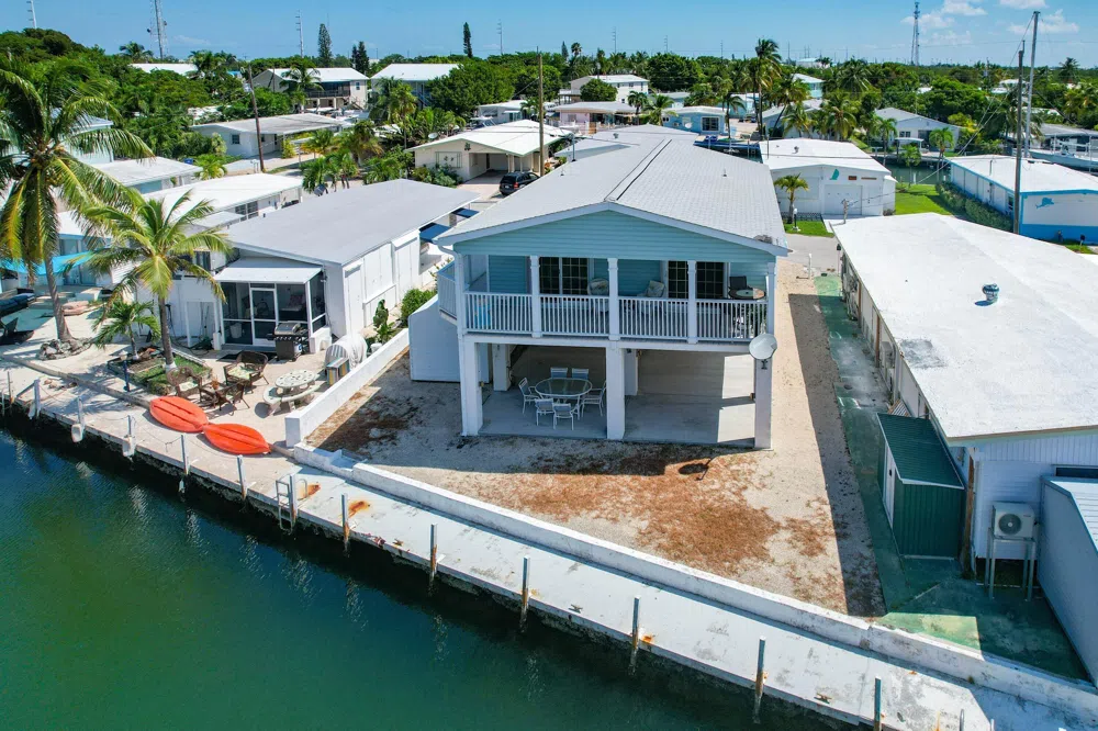 PRICED BELOW APPRAISED VALUE! Plenty of natural light filters through the windows of this West facing stilted 2 bedroom 2 bath home off Boot Key Harbor. Sheltered 50 feet dock and easy access to the Ocean or Gulf for the avid boater. Open porch has beautiful views of our famous sunsets.