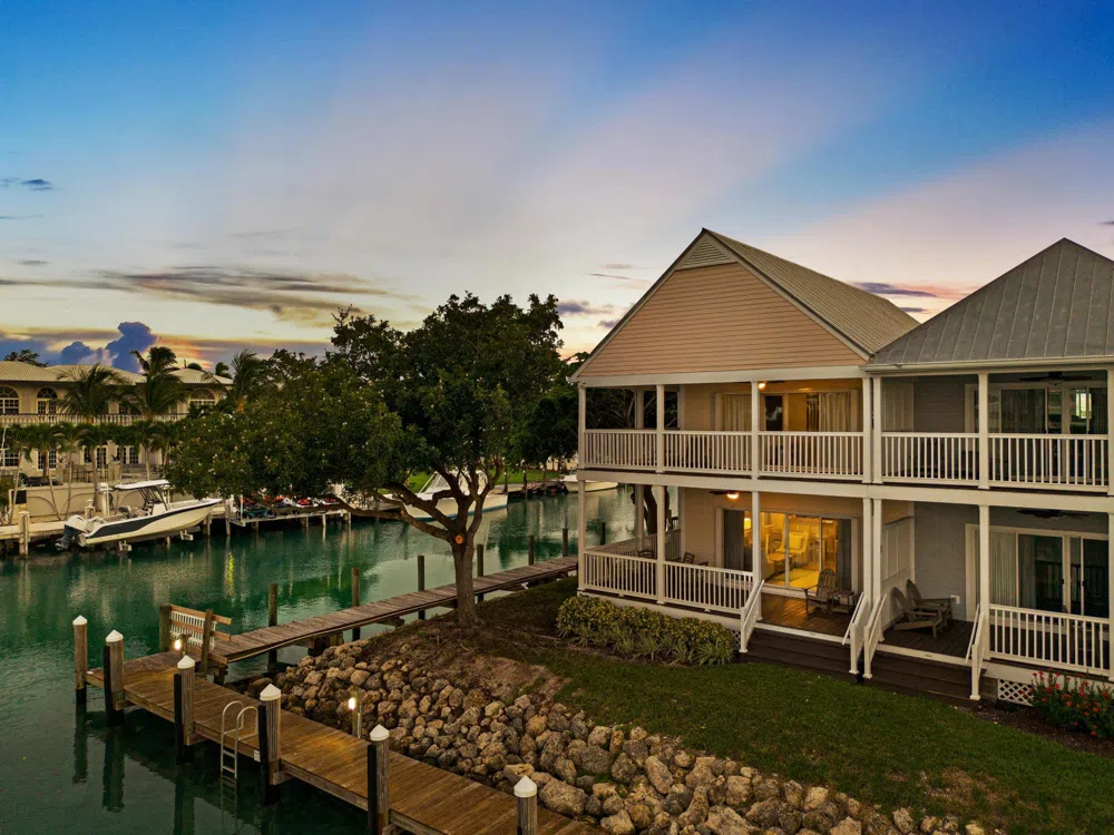 This is a very unique Hawks Cay Cottage style home and it TRULY One of a Kind. Originally built as the Developers select home, this villa is perfectly situated on a corner/end of Harbor Village Drive with complete wrap around upper and lower decks that allow you to enjoy water views from all sides. The interior is updated to the ''Coastal'' collection furnsihings which allows for immediate entrance into the Hawks Cay Resort rental program. The floorplan is all you could ask for with a full Bedroom and ensuite full bath downstairs as well as two very spacious bedrooms and bathrooms up. All bedrooms are light and airy and offer water views from the many windows and decks. The family area downstairs is the popular Open Concept, and allows for LARGE family gatherings, dinners, game nights and best of all fishing fun. Step outside to the crytal blue waters of Duck Key which mimick a tropical reef. Marine Life is plenty and the water is so clear, you can see to the bottom. Enjoy the porches on all sides and all rooms. Keep it enrolled in the Hawks Cay Resort rental program, or use as your personal second home in the Florida Keys. Excellent Income generator while you are away.
