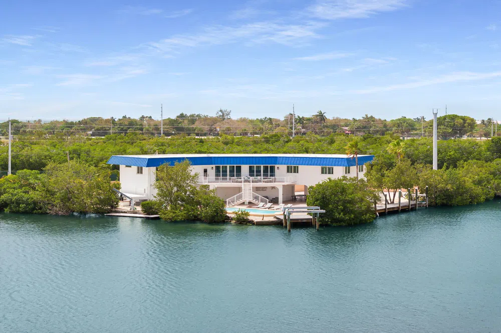 Located in Marathon, the heart of the Florida Keys, Casa Blanca by the Sea is a spacious five bedroom, three bathroom concrete residence with just over 2,900 sq ft of interior space. Impact doors and windows let in a generous amount of natural light, and the open concept kitchen boasts stainless steel appliances, granite countertops, and a recent kitchen cabinet makeover. A split floor plan affords privacy to the gorgeous primary bedroom, where you will find floor to ceiling windows and a custom designed walk-in closet. The luxurious en-suite bathroom features a large glass shower with two shower heads and a towel-warming rack offering additional comfort. The ground floor provides generous enclosed storage space, a one car garage, and covered parking for two vehicles. This piece of paradise is situated on just over half an acre of land, providing ample room for multiple boats, trailers, RVs, and vehicles. The 400 ft of waterfront is complete with two docks and a launch area for hassle-free kayaking and paddleboarding. The 12 ft dock boasts a 16,000lb boat lift, while the 48 ft dock is equipped with running water and a fish cleaning station. Also, on the exterior of the house facing the water, you can find a hot tub and a heated pool where you can enjoy the sunset after a long day on the water. In addition to being a gated turnkey home, this property is a profitable vacation rental. Statements available upon request. Casa Blanca is close to all that Marathon has to offer, including excellent dining, world class fishing, and a vibrant local community. Whether you are looking for a primary home, a home away from home, or an income-producing property, Casa Blanca by the Sea is an ideal retreat for enjoying the relaxed tropical lifestyle of the fabulous Florida Keys.